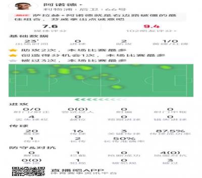 破局关键!阿诺德本场数据:替补登场两送助攻,3次关键传球