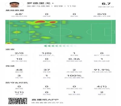 罗德里戈本场比赛数据如下: