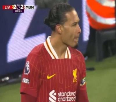第82分钟,阿诺德前场传球失误,曼联打反击,加纳乔传中被范迪克封堵。