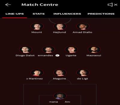 体育资讯12月15日报道宣称 曼联公布曼市德比首发阵容,在曼联官方APP上,球队的阵型如上图。