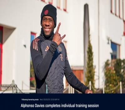 拜仁官方:阿方索戴维斯已经恢复个人训练