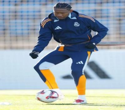 从皇马官方公布的照片来看,阿拉巴也参加了训练。