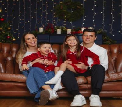 特谢拉在社媒晒出了合影中,他与妻子身着白装,一对子女则身穿红色睡衣,配着棕色沙发、圣诞树以及灯带的背景,营造出了满满的圣诞氛围。特谢拉还用葡萄牙为照片配文写道“Feliz Natal(圣诞快乐)”。
