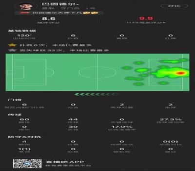 天神下凡!巴因德尔本场:两扑点,6次扑救4次解围,评分全场最高