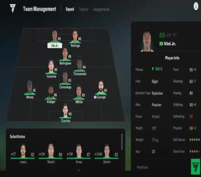 EAFC25皇马部分球员总评泄露:维尼修斯89、贝林88、裤袜90
