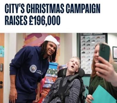 曼城圣诞慈善活动圆满收官,共筹集19.6万英镑善款