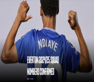 埃弗顿新赛季号码:新援恩迪亚耶10号布兰斯维特32号莫派21号