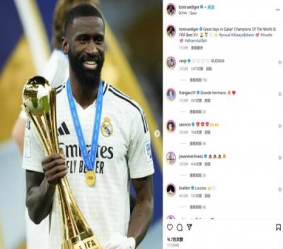 吕迪格社媒晒照:在卡塔尔入选年度最佳阵并成为世界冠军