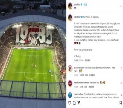 托迪博表示:“亲爱的尼斯,我要真诚感谢经理、工作人员、队友,当然还有球迷们。感谢我能和你们一起度过了这些难忘的赛季。”