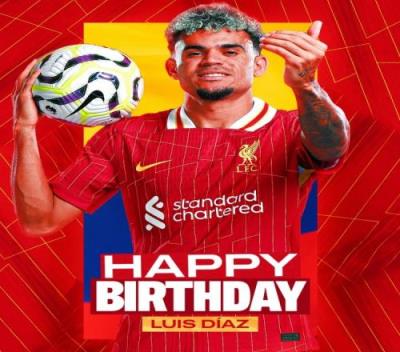体育资讯1月13日报道宣称 今天是利物浦边锋路易斯-迪亚斯的28岁生日,利物浦官方为他送上祝福。