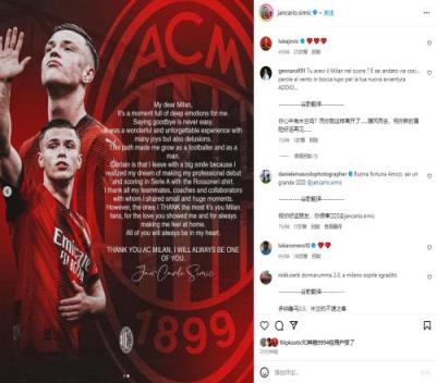 体育资讯7月24日报道宣称 比利时球队安德莱赫特签下19岁AC米兰中卫西米奇,双方签约至2029年。西米奇在社交平台撰文,回顾了自己的米兰生涯。