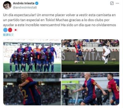 伊涅斯塔晒告别赛照片:很高兴能再次穿上这件球衣
