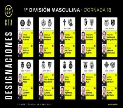 体育资讯12月19日报道宣称 本周末,西甲第18轮将全面开战,西班牙足协官方公布了本轮比赛的裁判安排。执法巴萨主场迎战马竞焦点战的是本戈切亚,埃斯库德罗斯主裁皇马对阵塞维利亚。