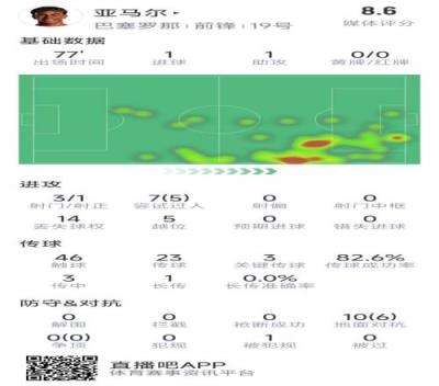 体育资讯1月16日报道宣称 在本轮国王杯巴萨对阵贝蒂斯的比赛中,亚马尔传射建功,以下为他在本场具体数据: