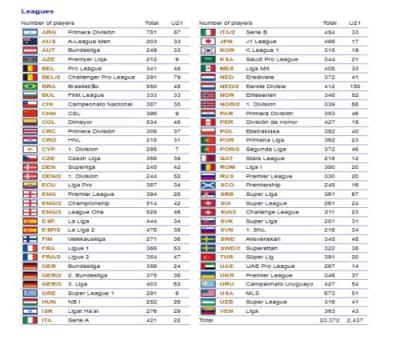 而全球U21球员最多的莫过于荷乙,在412名球员中有150名是U21球员,占比高达惊人的36.4%。