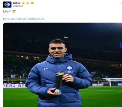 此役劳塔罗禁区外世界波破门,这位阿根廷前锋当选意甲官方本场比赛最佳球员。