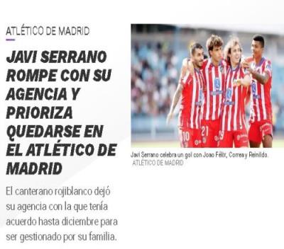 目前,哈维-塞拉诺收到了来自西乙的报价,也有其他欧洲次级联赛的额报价,不过哈维-塞拉诺希望留在马竞。