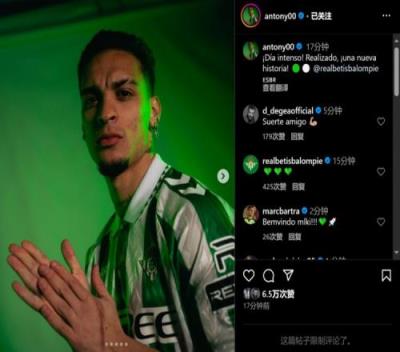 安东尼谈加盟贝蒂斯:忙碌的一天,开始书写新的故事!