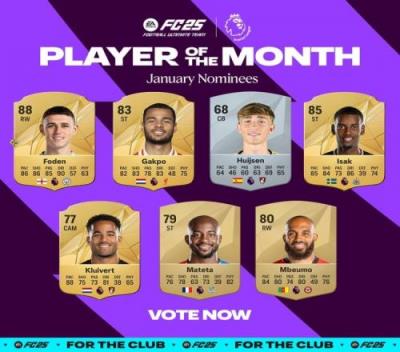 体育资讯1月30日报道宣称 英超官方公布了1月最佳球员候选7人名单,状态出色的福登和加克波领衔。