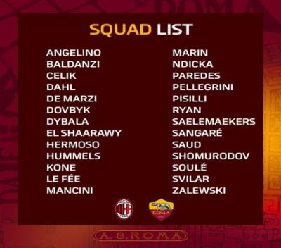体育资讯12月28日报道宣称 罗马俱乐部公布了本轮意甲联赛对阵AC米兰的大名单,上轮率队取得大胜的迪巴拉、萨勒马克尔斯领衔。