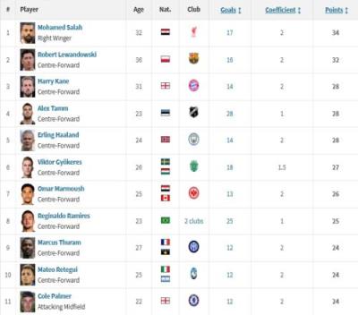 谁能笑到最后欧洲金靴排名:萨拉赫跃居头名,莱万、凯恩二三