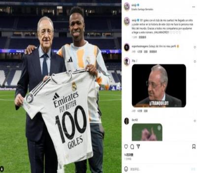 达成球队百球里程碑,维尼修斯社媒:成为皇马一部分让我倍感幸福