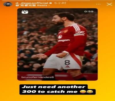 德赫亚转发了这条动态并写道:你只需要再踢300场就能赶上我了
