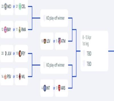 体育资讯01月30日报道宣称 欧冠联赛阶段全部结束,排名1/2/7/8的队伍分别是利物浦、巴萨、里尔和维拉;排名3/4/5/6的队伍分别是国米、阿森纳、马竞和勒沃库森。