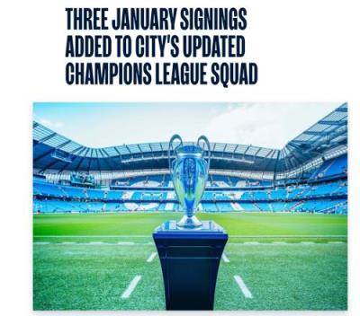 按照欧冠注册规则,下一个阶段最多注册3名新援,因此曼城4名新援只能有3名球员入选。