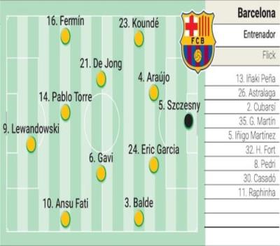 西媒预测,巴萨在国王杯比赛中将派出多位替补球员,什琴斯尼和阿劳霍或将迎来本赛季首秀。