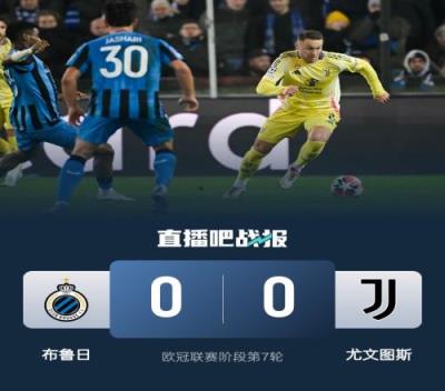 布鲁日00尤文全场两队仅1次射正,是欧冠自2012年以来首次
