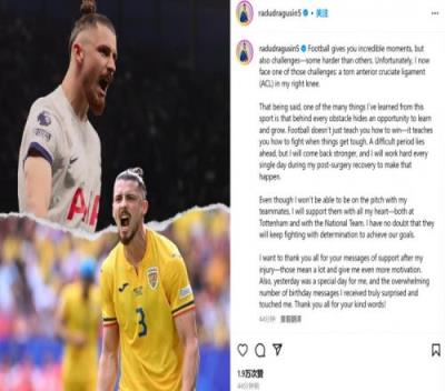 “尽管如此,我从这项运动中学到的众多感触之一,就在于每次挫折过后都隐藏着学习和成长的机会。足球不仅能够教会我如何取胜,更教会我如何在面对困难时战斗。未来将是一段艰难的时期,但我会变得更强。我会在恢复期每天努力,尽早回归。”