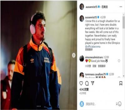 胡梅尔斯在社交媒体上写道:“我知道我们现在的处境很艰难,但我毫不怀疑几周后一切都会好起来的,我们会一起走出困境。”