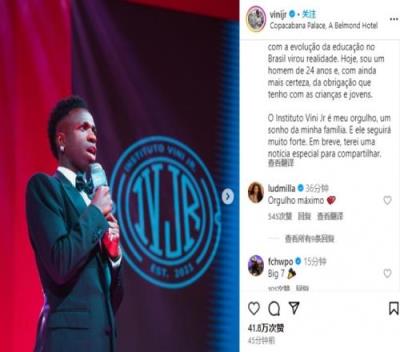 “维尼修斯学院是我的骄傲,也是我家人的梦想。这个项目将继续下去,我很快还会有特别的消息分享给大家。”