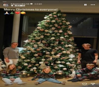 体育资讯12月26日报道宣称 皇马中场莫德里奇更新社媒动态,为大家送上圣诞祝福。