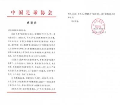 2024年岁末,深圳新鹏城收到了来自中国足协的两封感谢信