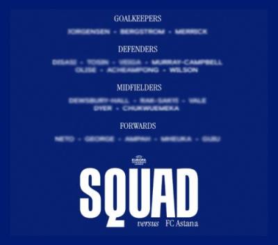切尔西客战阿斯塔纳名单: