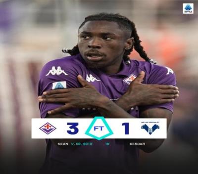 体育资讯11月11日报道宣称 意甲第12轮,佛罗伦萨3-1完胜维罗纳,球队以7胜4平1负积25分的成绩升至联赛第三位。