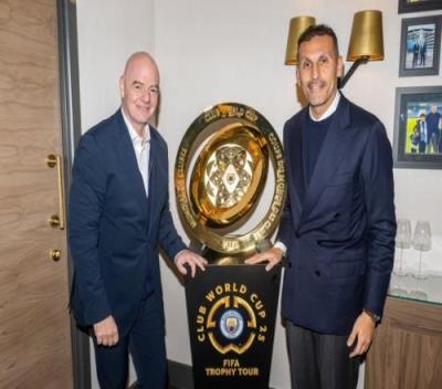 因凡蒂诺观战曼城vs切尔西,带世俱杯奖杯展览&与曼城主席会面