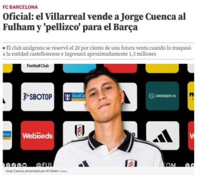 西媒指出,在巴萨财务危机时期,任何经济收益都值得庆祝。巴萨在2020年将豪尔赫-昆卡以250万欧的价格出售给比利亚雷亚尔时,就考虑到了二转分成比例,巴萨将从中获得大约130万欧的收益,根据某些转会条款的变量,这一分成可能会更高。
