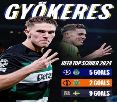 体育资讯1月1日报道宣称根据欧冠官方统计,约克雷斯是2024年度欧足联赛事进球最多的球员,他一共打进16球,分别是欧冠5球、欧联2球以及欧国联9球。