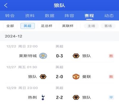 2月狼队将迎来维拉、利物浦、势头正劲的伯恩茅斯。↓