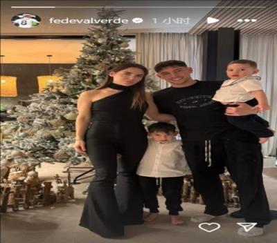 在个人社媒,皇马中场巴尔韦德晒出全家福送上圣诞祝福,巴尔韦德抱着小儿子Bauti,大儿子Beni乖巧地站在父母中间。