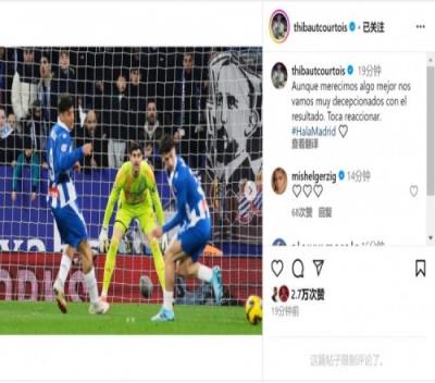 库尔图瓦在社交媒体上晒出比赛照片,并写道:“尽管我们的表现配得上更好的结果,但我们仍然对失利感到非常失望,是时候做出反应了。”