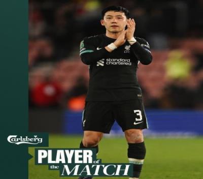 利物浦官方也在宣布远藤航被球迷票选为本场最佳球员。