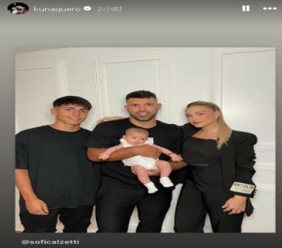 体育资讯11月11日报道宣称 阿圭罗更新社媒,晒出与自己两个月大的女儿奥利维亚以及家人合照。
