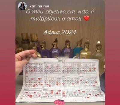 她晒出一份2024年的日历,两人过夫妻生活的日子都被标记了出来。卡琳娜还配文到:“我的人生目标就是让爱倍增。”