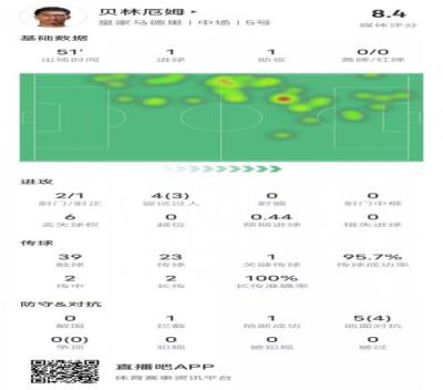 回暖!贝林厄姆半场数据:传射建功&3过人成功1关键传球,评分8.4