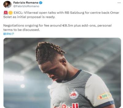 罗马诺透露,比利亚雷亚尔与萨尔茨堡就中后卫奥马尔-索莱特转会展开谈判,初步方案已准备就绪。