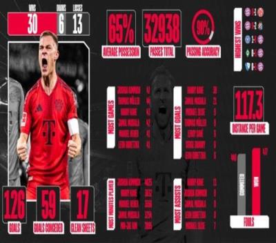 这一年,拜仁场均跑动距离达到117.3千米,共犯规440次,造对手犯规477次。